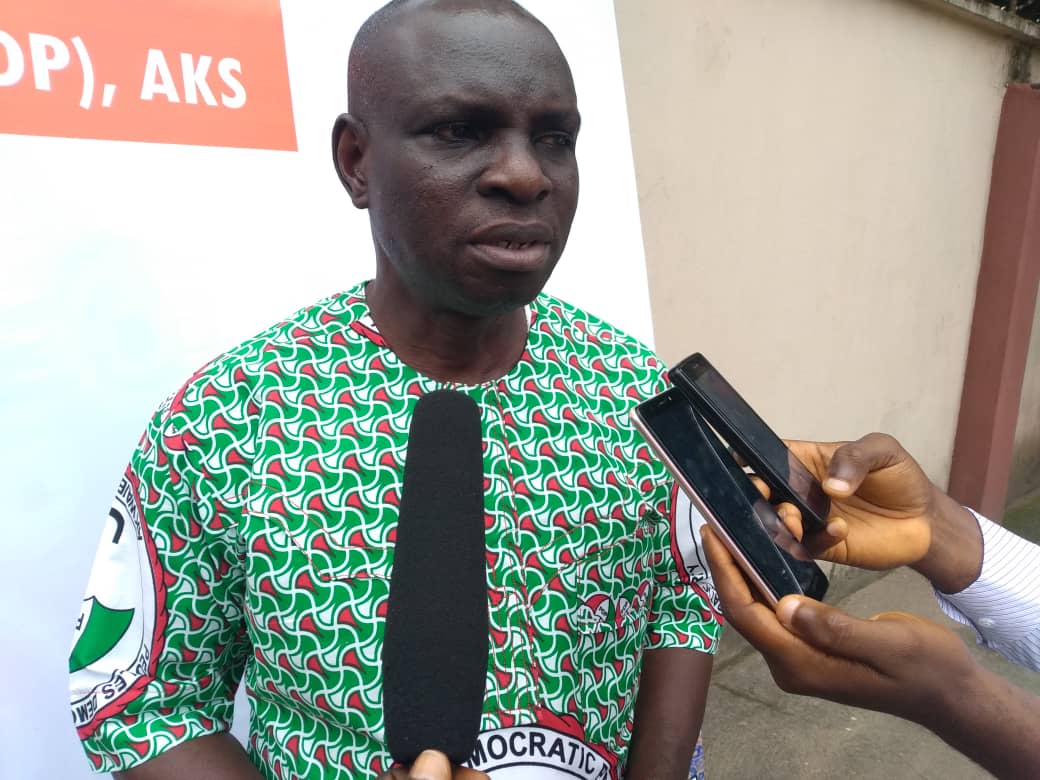Ask if the leadership of the party in Akwa Ibom State will yield to the pressure of the ruling All Progressives Congress (APC) in terms of defection, the Chairman say its impossible ” God forbid,its cannot happen here, it will not come to pass, not in Akwa Ibom. The leadership here is very stable and firm”