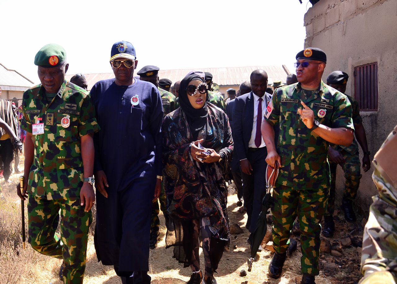 The Minister who visited affected communities for an on-the-spot assessment of the affected area with her counterpart from the Ministry of Defence and Service Chiefs was on the ground to coordinate Humanitarian responses